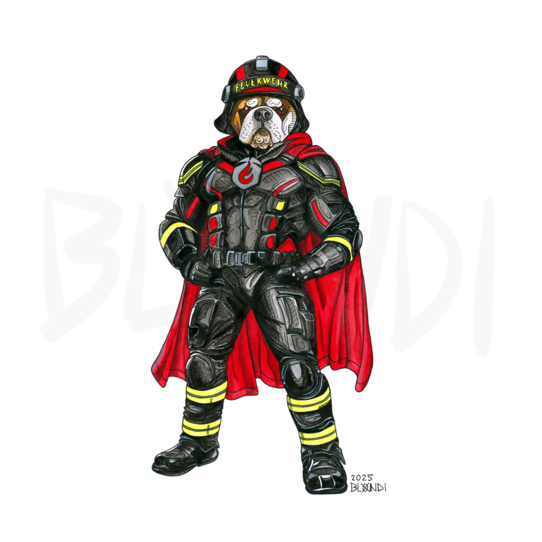 Sir Bulliver earned his name by showing up when things get rough: helmet on, chest out, heart in the right place. Known as Firebull at Your Service, he’s the kind of bulldog who’ll stand by you when life hits hard, no questions asked. Just don’t ask him to rescue cats from trees – even heroes have their limits.